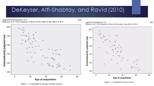 根据语言习得关键期假说(Critical Period Hypothesis),年龄与语言学习具有极强的相关性,且以语音层面的影响最为显著。目前,二语习得界普遍认可的结论是Dekeyser在2010年的平行研究,研究表明,18岁以前是外语学习的关键时期。