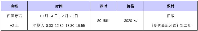 适合学员:零基础。对西班牙语及其文化感兴趣,希望通过学习西班牙语提高个人综合竞争力或有计划出国学习、旅游和工作的学员。