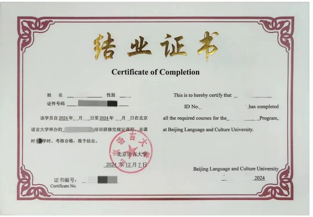 ☆小语种完成全部课程且成绩合格,提供北京语言大学颁发的结业证书。