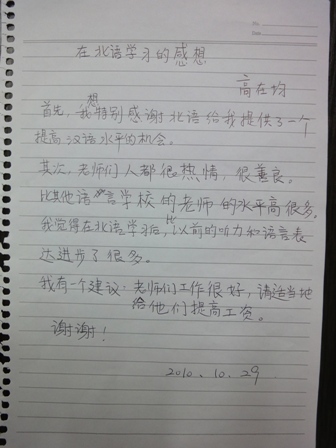 自2010年6月起至今,培训部与斗山(中国)投资有限公司合作的韩国籍高管汉语培训项目已经顺利合作两年,期间,培训部先后对34位韩国籍高管分别进行了一个月集中汉语培训,北京语言大学成为他们来中国的第一站。