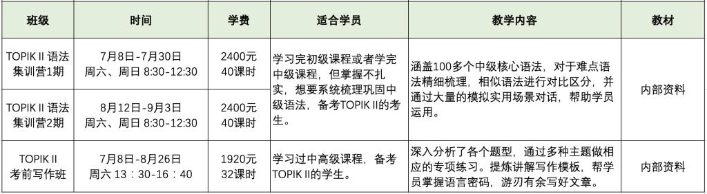 续接课程:TOPIK II 中级语法班(巩固);或TOPIK II 高级语法班(提升);或者商务韩国语、高级口语班。