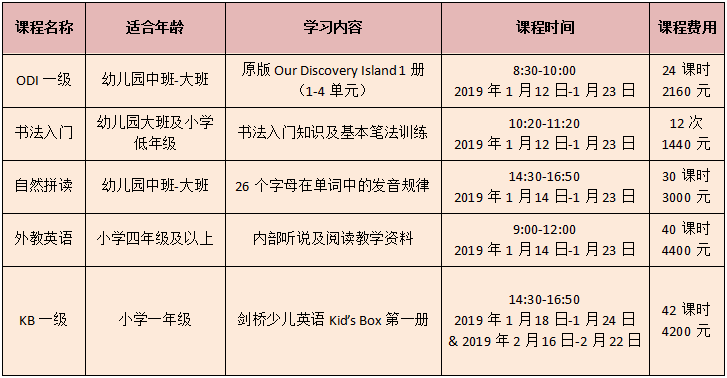 2019年寒假,子乐青少将推出英语及书法集训课程,欢迎广大学员和家长报名参加。具体课程安排如下: