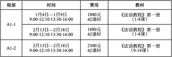 A1教学目标:掌握《法语教程》第一册所涉及词汇及语法点。可以阅读简易读物,看懂便条、短信等相关信息。能够表达接受或拒绝,提出请求,就体育、节日、日程安排等主题进行简单交流,能够用感叹句及强调句来丰富语气。课程学习期间穿插介绍法国文化并学习法语歌曲。