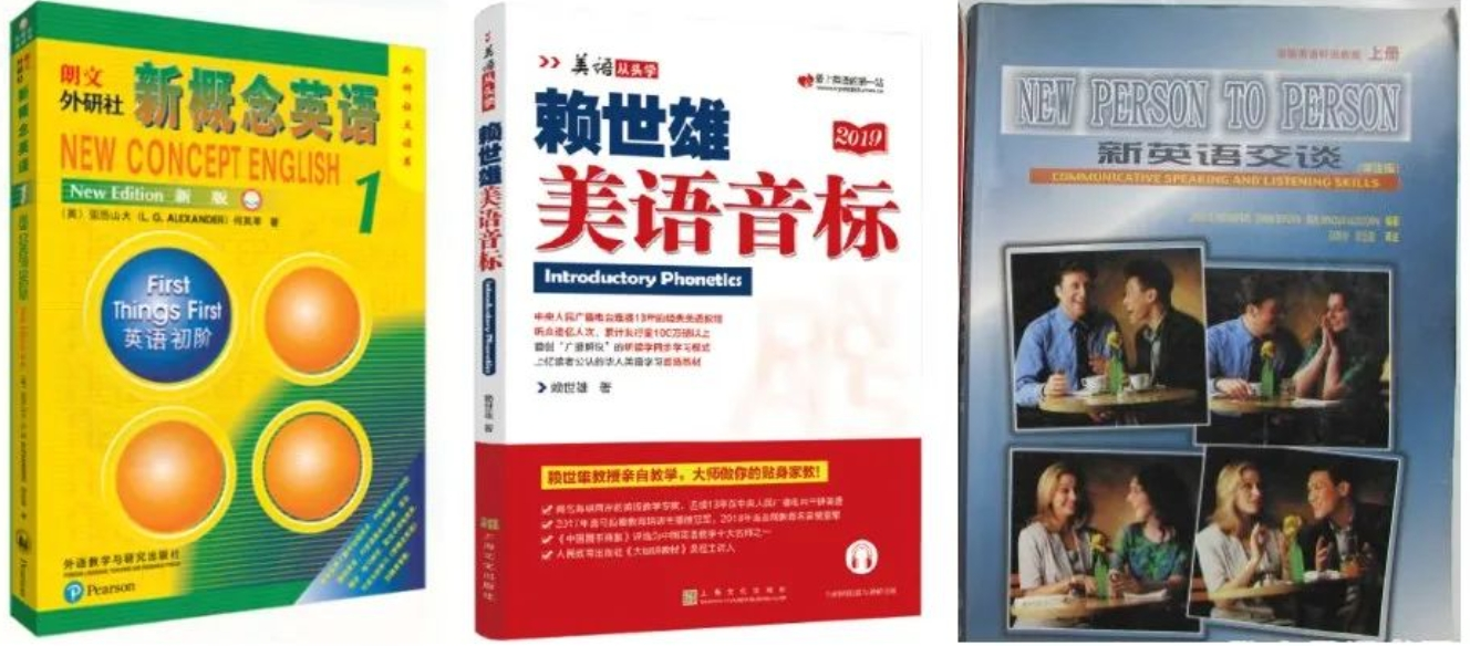 综合英语:《新概念英语》1 音标发音:《赖世雄美语音标》 听说训练:《新英语交谈》 |