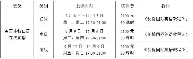 每班限额15人(外教口语10人),先报先得!