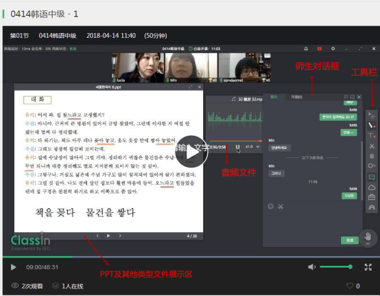 同时允许多个课件组合式教学,功能强大,还原线下面对面的互动式教学,