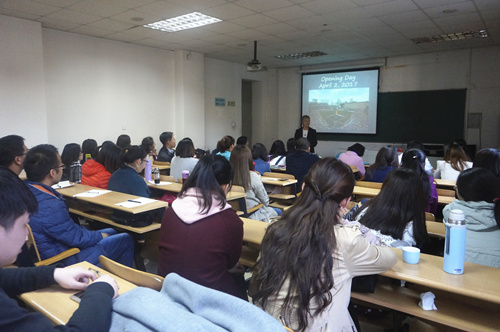 为开拓学员的国际视野,增强学员的跨文化交际意识,3月27日下午,学院外语部邀请美国使馆文化专员Janice Englehart为听说读写全能班举行了题为《美国文化》的讲座。持续近2个小时的讲座,现场气氛活跃,交流互动频繁。