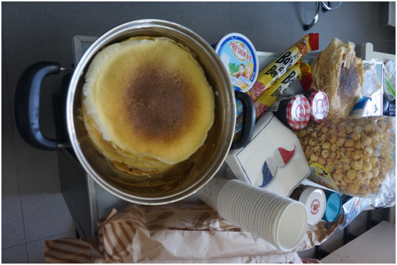 法语外教HUGUES和CINDY为了这次活动,去超市采买食材,CINDY还趁回国的机会,从法国带来正宗法式香肠。两位老师做了法式薄饼,又叫可丽饼。