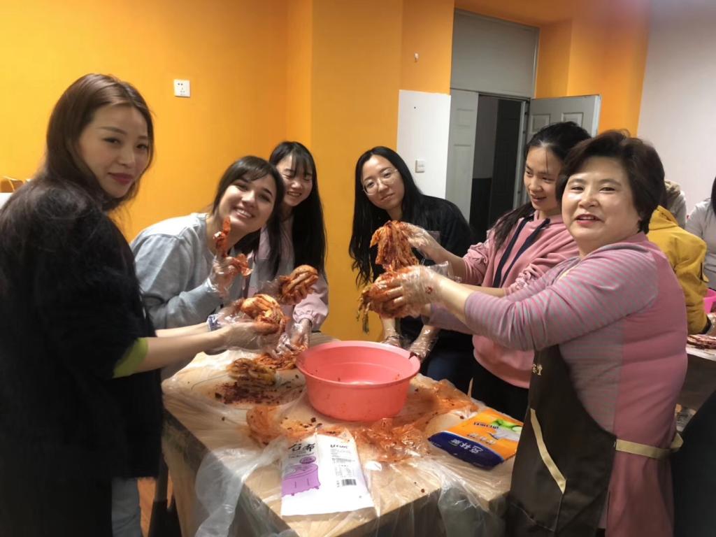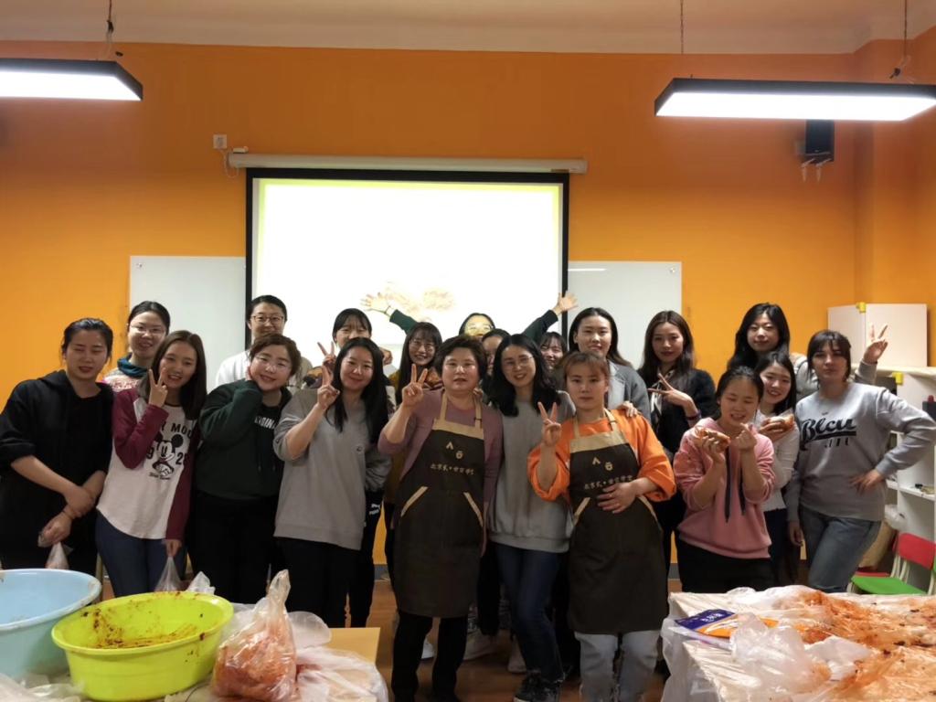 2019年3月27晚,培训学院外语部邀请到来自韩国釜山的李武熙女士为导师,来我院为学员们组织韩国文化体验之泡菜制作活动。李武熙女士首先为学员们讲解了韩国料理方面的语言知识和文化常识,之后把学生们分成小组,示范指导,手把手教学如何制作泡菜。 除了泡菜之外,李女士还演示了传统醇香的韩国经典菜式—泡菜配包肉的搭配做法,菜香四溢,现场充满了欢声笑语,热烈的气氛将这场味觉盛宴推向了高潮。