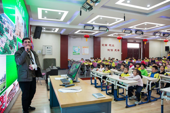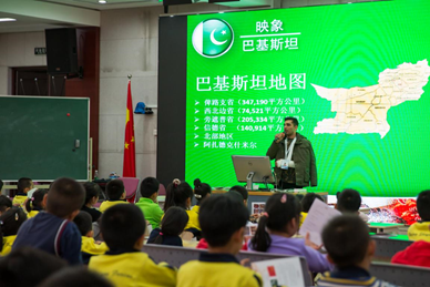 3月25日下午,北语高支附项目组面向石油附小一、二、三年级的100多名同学,开展了一场热闹、有趣的“一带一路沿线国家文化讲座”。作为系列讲座的第一篇,我们邀请到了来自巴基斯坦的外籍专家纳飞斯老师,纳飞斯老师从巴基斯坦的地理、人文、饮食、体育、经济、政治多个维度,用生动的语言和故事型的叙事方式,在一堂课的时间里,带着学生们游历了文明古国巴基斯坦。讲座期间孩子们通过和外教的互动、在图册上填色识图、连线问答等多种方式加深巩固了当堂所学的知识,认识了我们的友好邻国——巴基斯坦。这种寓教于乐的授课方式受到了学生们的喜爱。
