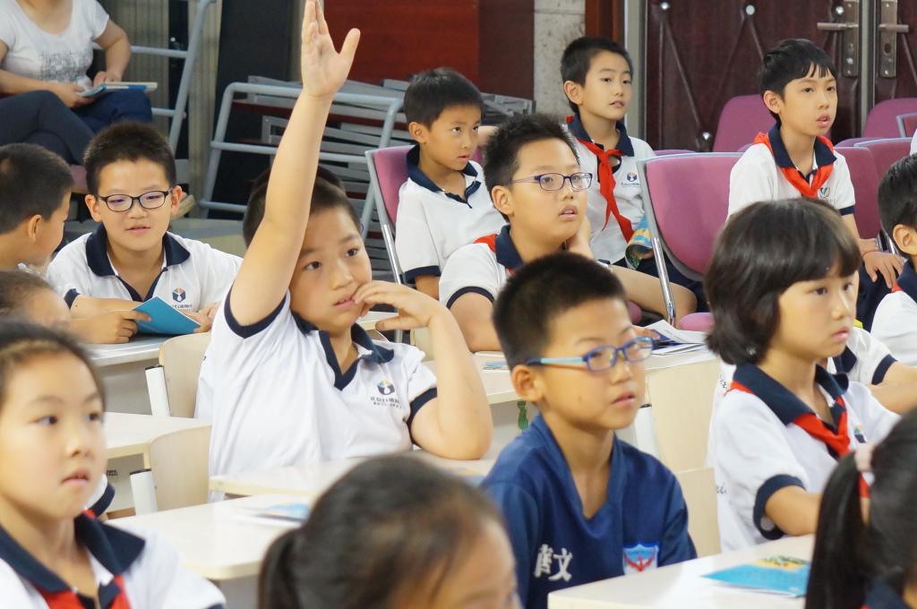 讲座结束后,同学们久久不肯离去,围着老师用中文或英文问着各种各样关于智利的问题。比如“去智利旅行的话坐飞机要多久?”“智利的火山是活火山还是死火山? 最近一次爆发是什么时候?”等等,罗琳老师一一耐心地做了解答,她非常感谢有这样的机会可以让中国的孩子们认识智利,也非常欢迎附小的同学们能去自己的老家做客。