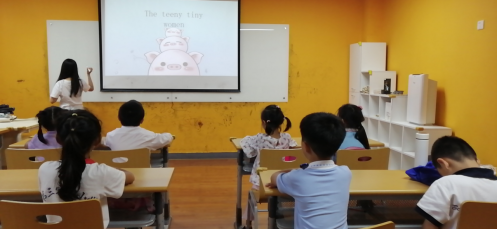 英语分级阅读-老师通过让小朋友们自我介绍、分小组回答问题、玩游戏等方式来阅读理解The tiny teeny women,同时运用所学的词汇和句型进行与日常生活学习相关的口语交流。
