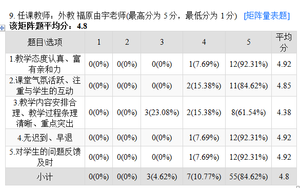 1、2019年秋季学期的教学评估。