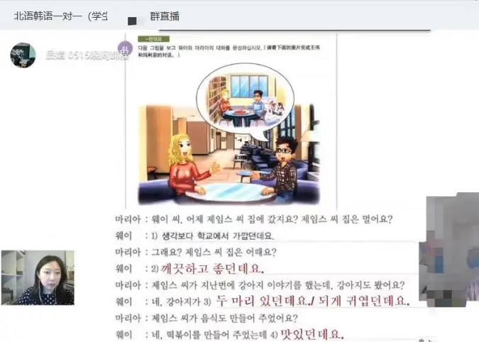 2020年初,由于个人工作的原因以及对未来职业发展规划,我考虑2021年前往韩国就读研究生。因为时间较为紧迫,个人韩语基础水平较差,之前也没有参加过韩语等级考试,为了能赶上年底前韩语申研时间,需要尽早展开韩语系统性学习。在寻找适合自己的语言教学机构的过程中,北京语言大学培训学院的关老师针对我的情况,积极帮助我规划学习计划,并为我寻找学院内韩语教师中经验最为丰富的呂婧老师作为我一对一课程的老师。在沟通后第三天,我听了吕老师的第一堂课。虽然是第一次上网课,但是呂婧老师认真负责的态度、充实地教学安排以及平易近人的讲解方式就深深打动了我,也让我心中焦虑的大石头终于放下,能够安心正式进入韩语的学习。