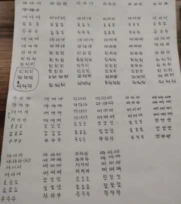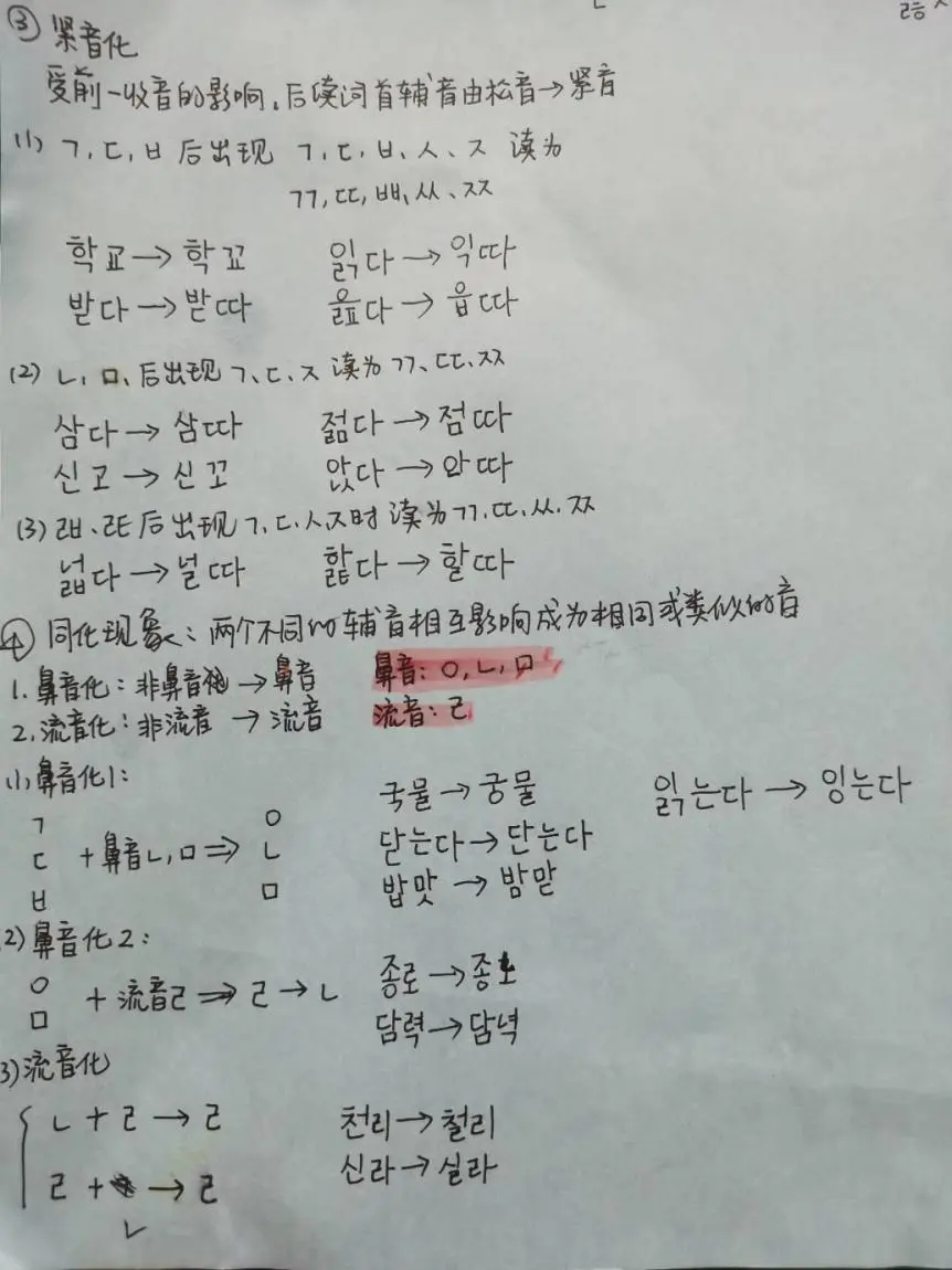 由于疫情的原因,我和老师只能通过网课的形式进行上课。尽管如此,在发音课中,吕老师也会通过视频仔细检查我的发音口型及发音方式并及时进行纠正。下课后需要自己边写熟悉韩文字型,边大声朗读出来。基础发音的学习没有捷径,只能通过多动嘴皮子多写进行巩固,除了完成老师要求的练习量以外,一有空闲时间我会再进行书写练习。而对于韩语中经常会出现并且容易混淆的音变现象,课下自己及时总结,反复观看记忆,可以加快音变现象的理解和吸收。
