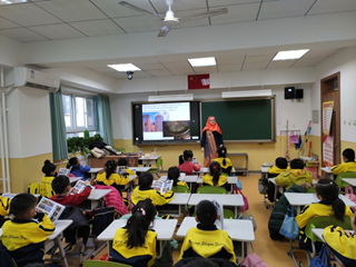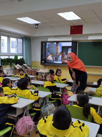 首先,白玫老师介绍了伊朗的国旗和区域位置。伊朗是文明古国,位于亚洲西南部,东邻巴基斯坦和阿富汗,西接土耳其和伊拉克,中北部紧靠里海、南靠波斯湾和阿拉伯海。接下来,白老师用流利地汉语介绍了伊朗的气候特征、民族、货币、四大最初文明、景点、资源、饮食习俗、经典音乐、电影、重要节日、手工艺品及杰出科学家等,同时辅以大量精美的图片,同学们听得全神贯注,不由自主地发出阵阵惊叹声。尤其是当白老师讲到伊朗的景点—巴姆城堡、塔赫特苏莱曼等,同学们充满了好奇心和想象力,并结合自己的日常生活不断地询问白老师各种问题。同时,白老师还特意带来了家乡的波斯地毯向孩子们展示,让同学们更直观地认识了解伊朗。