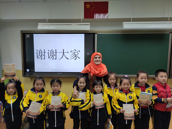 白玫老师刚一走入教室,可爱的孩子们就扑闪着大眼睛好奇地问道“你是外国人吗?”、“你会说汉语吗?”、“你今天要给我们上课吗?”老师微笑着耐心地一一回答孩子们的问题。