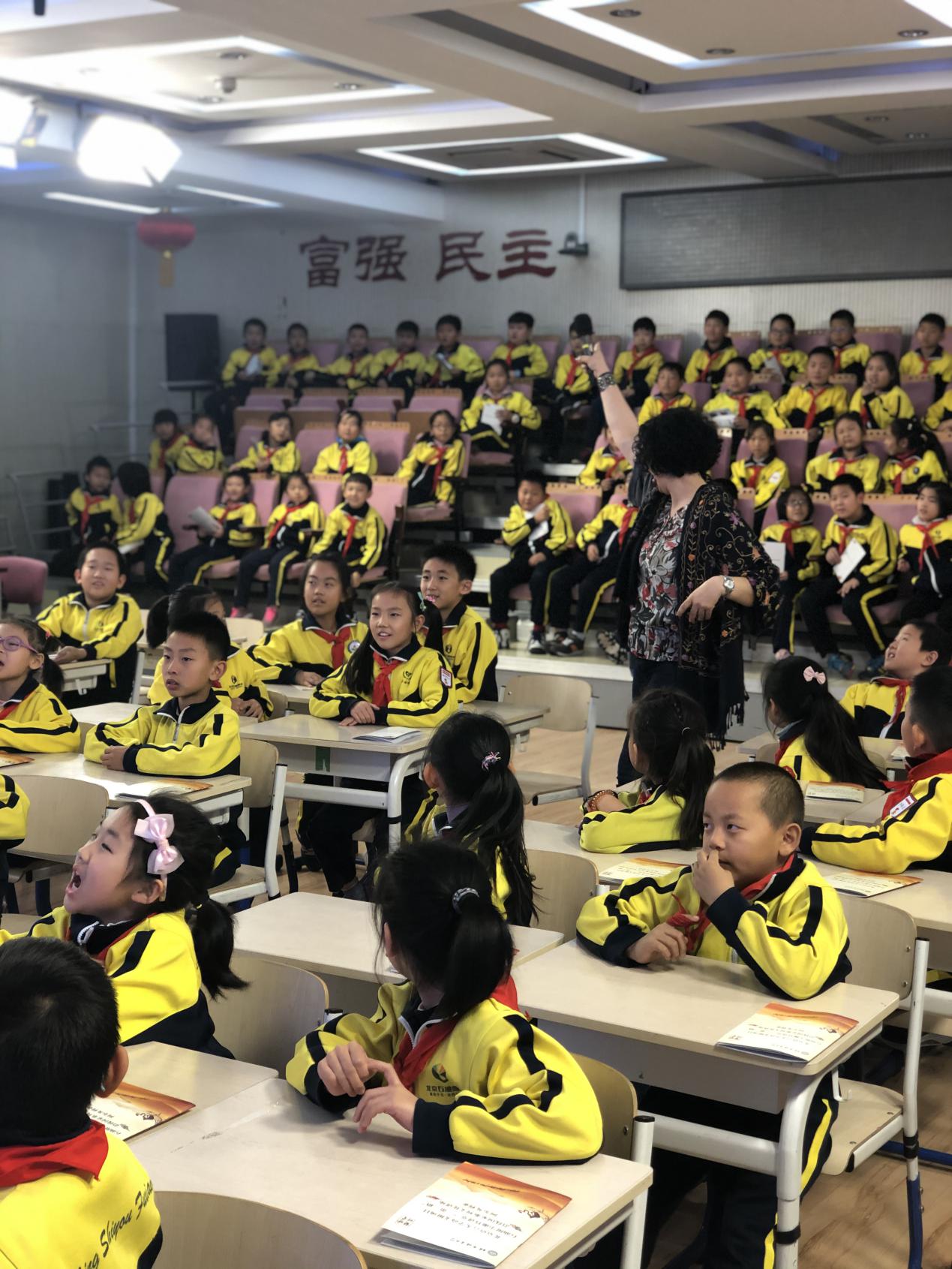 12月9日来自北京语言大学培训学院的阿尔及利亚Rasha老师走进了石油附小“蘭竹讲堂”,为二里庄校区160多名同学带来了一场丰富多彩的文化讲座。