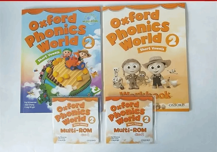 第二册为短元音的拼读学习,本级别共八个学习单元,四个复习单元。学习单元主要讲解a, e, i , o u的短音发音及对应发音的闭音节单词的学习,如cat, ram, web, hip, pin等。