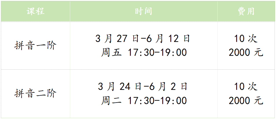 • 时段:3月24日 - 6月2日,每周二 17:30-19:00(共10次课)