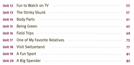 125个操练句型,668个主题词汇单词/词组,至少20个演讲题材。本级别涉及的主题话题有动物,指路,环保,亲戚,赚零花钱,娱乐活动,风景名胜,田间旅行,运动目等。涉及的语言功能有表达必须和不能,说明原因,举例说明,完整讲述过去的事,表述将要做某事,对过去做过的事,有计划的将来要做的事,已经完成的事表达,对假设的事情的表达等。