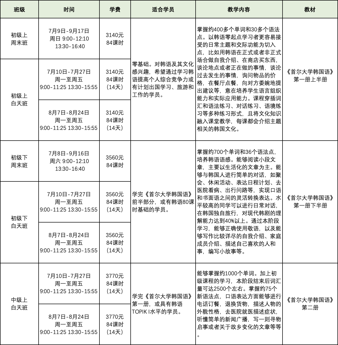 续接课程:TOPIK II 中级语法班(巩固);或TOPIK II 高级语法班(提升);或者商务韩国语、高级口语班。